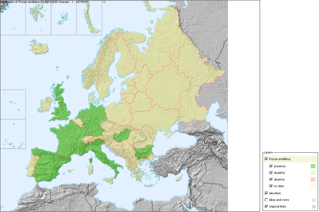 Per la Sardegna era indicato Procas cottyi, ora in sinonimia con C. armillatus.