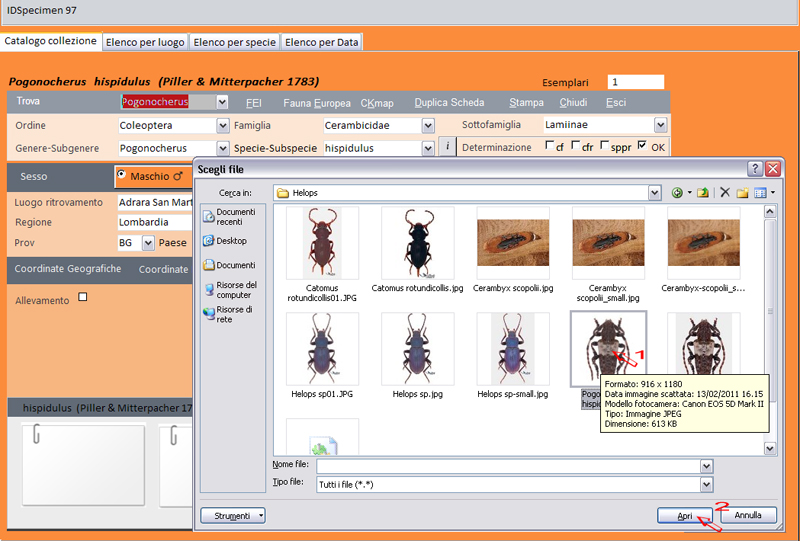 e sicuramente amplierei i campi di inserimento dati di raccolta per gli esemplari presi non solo in Italia ma in qualunque parte del mondo.