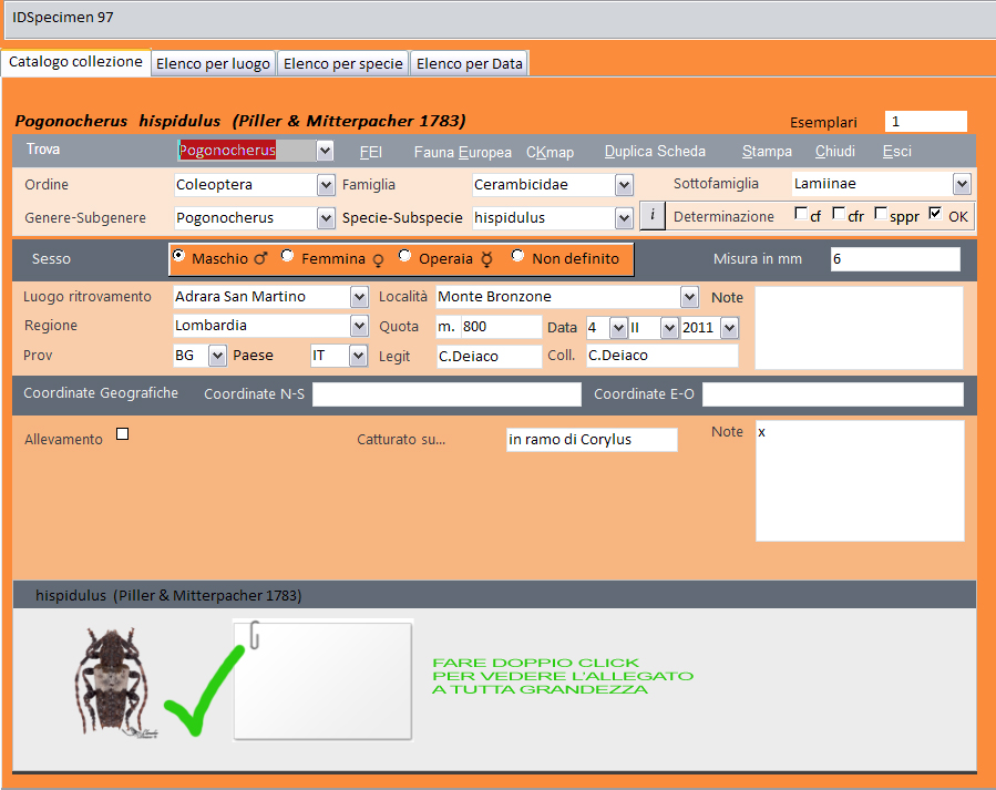 e sicuramente amplierei i campi di inserimento dati di raccolta per gli esemplari presi non solo in Italia ma in qualunque parte del mondo.