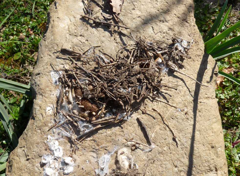Come si vede tutt'intorno erano stati ammassati degli stecchi e vario materiale vegetale che probabilmente serviva a formare una parete tutt'intorno alla cavità; il materiale era più o meno spesso a seconda della distanza tra le due pietre, che in alcuni punti si toccavano.