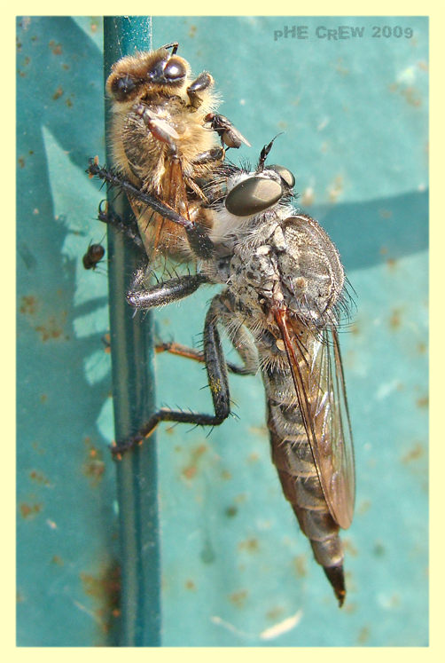 e' un Asilidae assassino ! che mangia altri Ditteri o Imenotteri, ma anche piccoli Aracnidi !