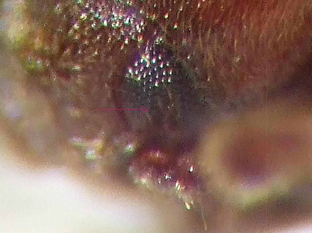 Aggiungo ora le misure dell'insetto visto che non lo avevo fatto: 3,1mm Visto che non conosco le abitudini della bestia, durante l'escursione ho : spaccato dei funghi secchi e parti di corteccia su quercia , scortecciato e raccolto detriti di legno/terra da ceppaie di castagni, se cio' puo' servire come ulteriore indicazione. Anche se ho avuto difficolta' a valutare l'incisione dell'occhio ( con delle setoe attaccate ?) direi fino a meta', comunque inserisco le migliori foto che son riuscito a fare, credo che quelle monocromatiche siano quelle che permettono di vedere meglio. Ho fotografato pure la fine dell'addome , erano queste le setole ? Ciao e Grazie Lucio PS: ho un'altro esemplare di Troscidae , in questo caso 2,2 mm senza carene sulla testa ed occhio segnato forse con due righe fino a meta' o poco piu', se interessa fotografo ed apro un'altra discussione.