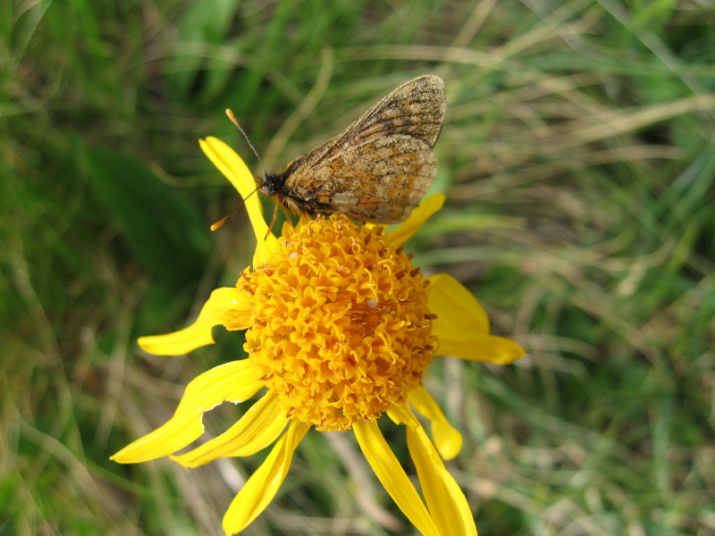 Su un fiore di Arnica montana (un po' avanti di età) questa Nymphalidae(?).