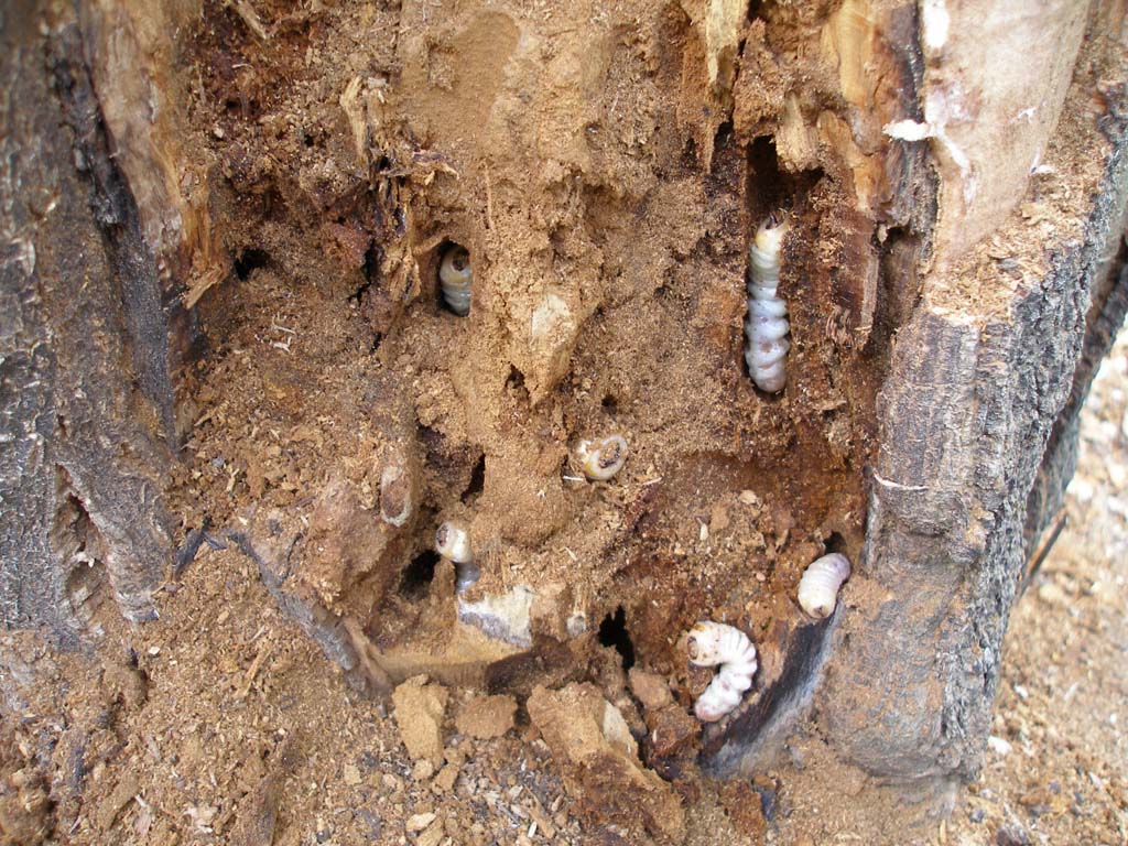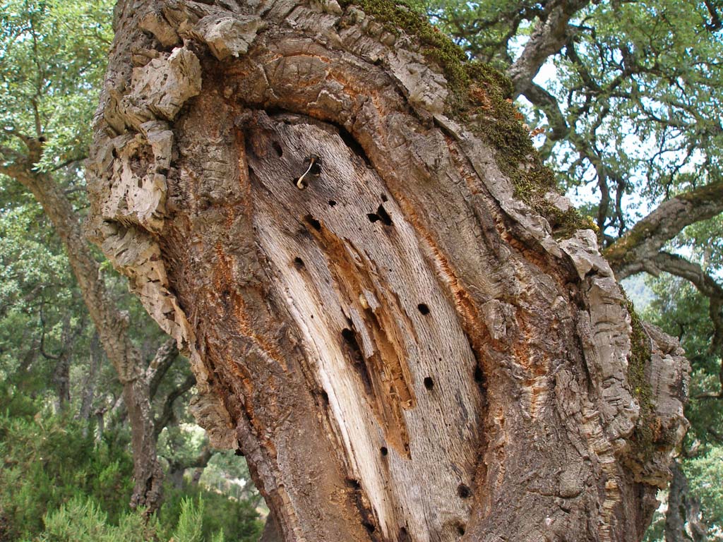 Molto spesso, nel caso, per esempio, di Prinobius myardi, la presenza di larve è facilmente riconoscibile per i fori di uscita di generazioni precedenti (vedi la foto allegata scattata in Tunisia, la pianta è Quercus suber). In questo caso ci vuole una buona accetta, e molto olio di gomito.