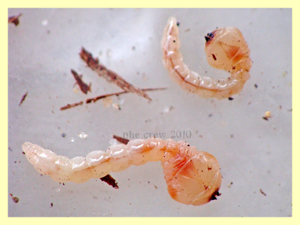 10 mm. circa, in un tronco sulla spiaggia. tentato di allevarle ma morte.
