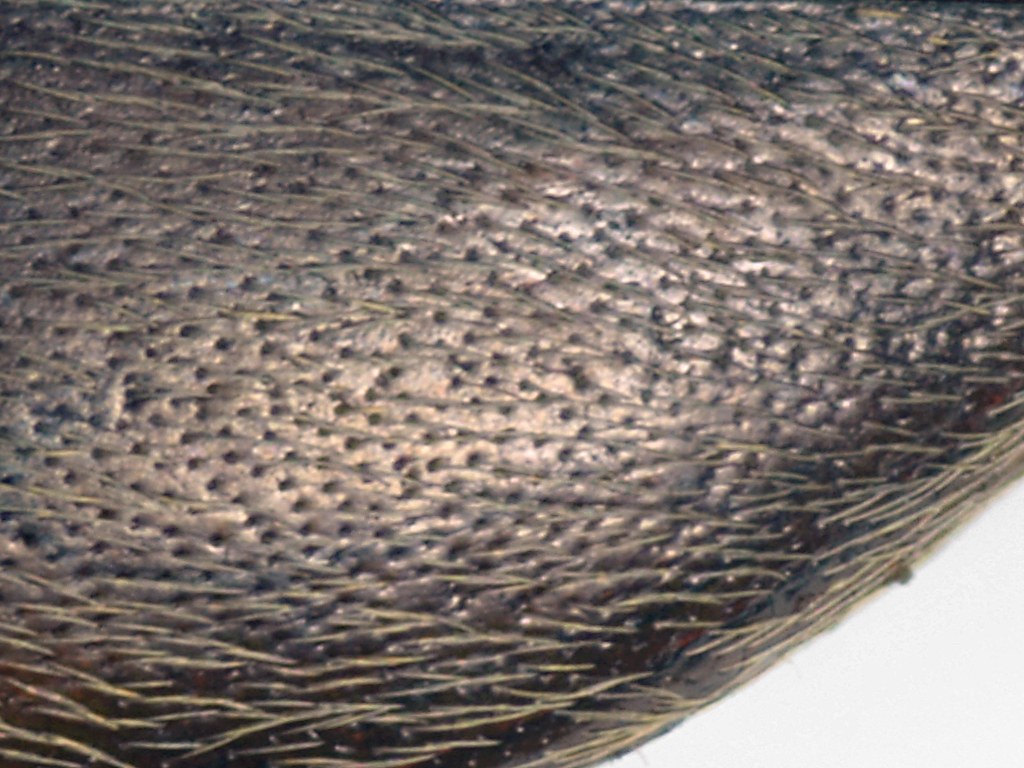 Ecco due particolari della superficie elitrale, alla stessa scala di quello dell'altra specie, presumo dello stesso genere, presa insieme a questa.