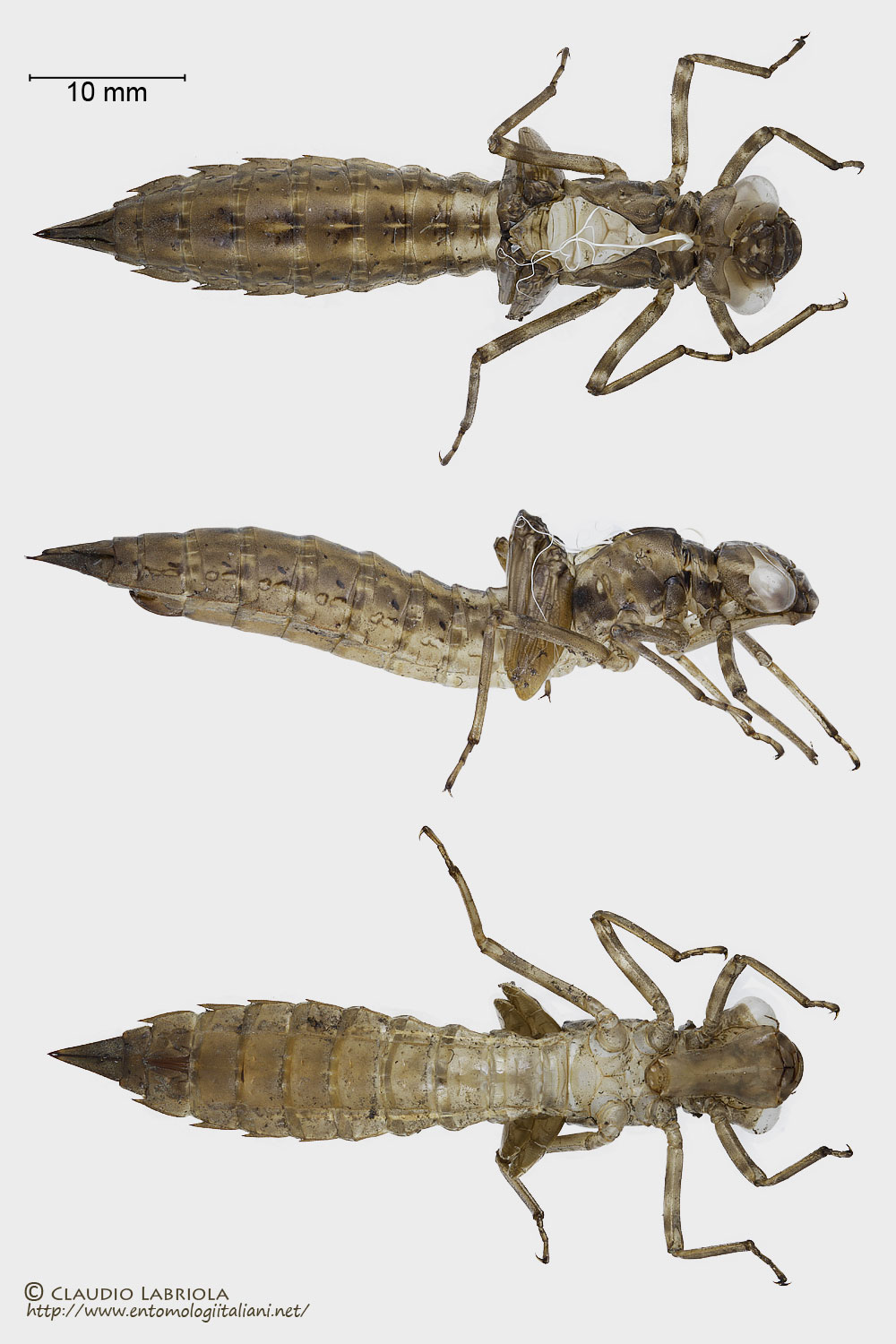 Ci sono almeno un altro paio di specie, ad esempio A. juncea e A. grandis, che hanno le esuvie molto simili ma la forma e le dimensioni della "maschera" (testa vista da sotto, foto a destra), molto lunga e snella, in questo caso, ne permettono facilmente la distinzione :)