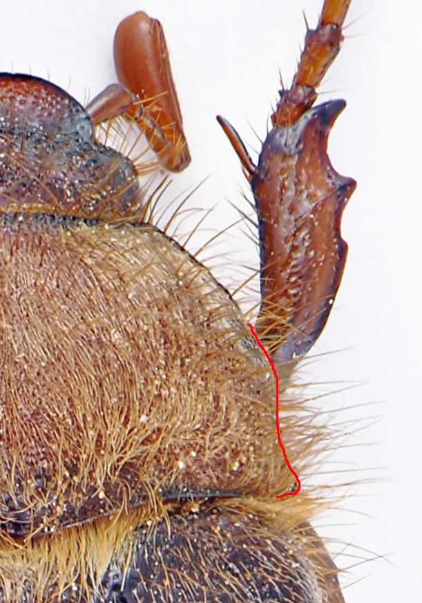 Il pronoto sinuato mi sembra più o meno ordinario, sempre considerando che le setole rendono difficile vederne il profilo precisamente. Ad ogni modo, a mio parere coincide con materiale di confronto dell'Italia settentrionale e centrale di cui dispongo.
