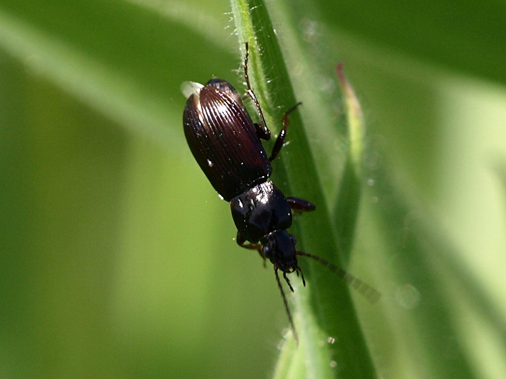 Oggi, in un'oretta ritagliata tra un impegno e l'altro, ho dato una rapida occhiata ad un prato acquitrinoso al margine del Raccordo Anulare, e c'erano numerosi Carabidi, di non meno di tre specie, tutti in attività verso mezzogiorno sulle erbe e gli arbusti di prugnolo. Questo è uno.