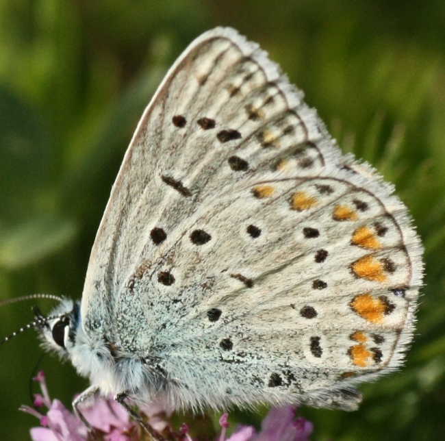 questo potrebbe essere Plebejus argus? Però c'è una macchia sull'ala anteriore che non mi convice! :?