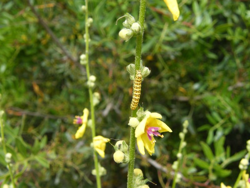 Mentre osservavo un cespuglio di lentisco infestato da afidi alla ricerca di crisidi e mutille, ho notato questo bruco su una vicina pianta di verbasco: misurava circa 20 mm. Potrebbe essere di Cucullia sp.?