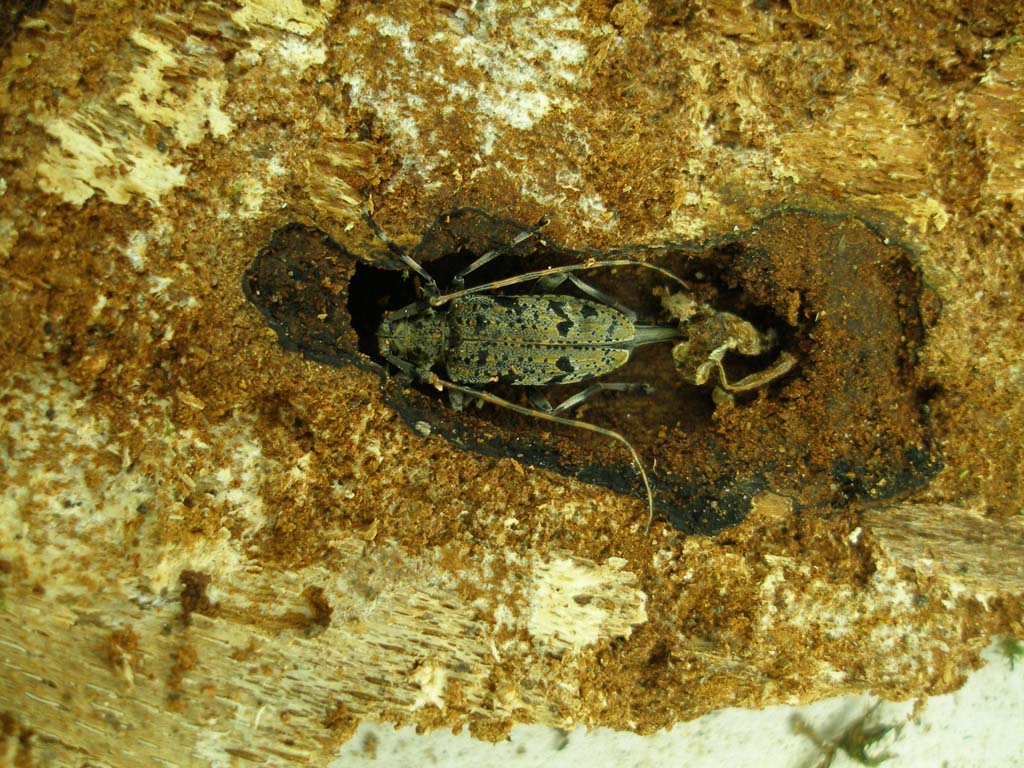Gianfranco, non è necessario che i tronchi siano grossi. Tanti anni fa (ora non ho a portata di mano gli esemplari superstiti nella mia collezione, ma era intorno al 1985), finito di fare lezione ad Anagni sono andato sull'Appennino al confine tra Lazio e Abruzzo e ho trovato una zona di faggeta che, partendo dal limite superiore (intorno a 1800 m), era stata abbattuta da una valanga caduta dai pascoli prossimi alla vetta un paio di inverni prima. C'erano centinaia di faggi di dimensioni prevalentemente medie e piccole (sui 30 cm di diametro) a terra, e sotto la corteccia centinaia, probabilmente migliaia, di Acanthocinus in celletta, allo stadio di pupa o già di adulto. Ne ho presi 20-30, poi mi sono fermato, un po' perchè non mi sembrava il caso di fare una strage, un po' perchè non avevo più barattoli disponibili. Erano i primi giorni di giugno (lo ricordo perchè stava finendo la scuola). Negli anni successivi ci sono tornato infinite volte e non ne ho mai più trovato neanche uno!