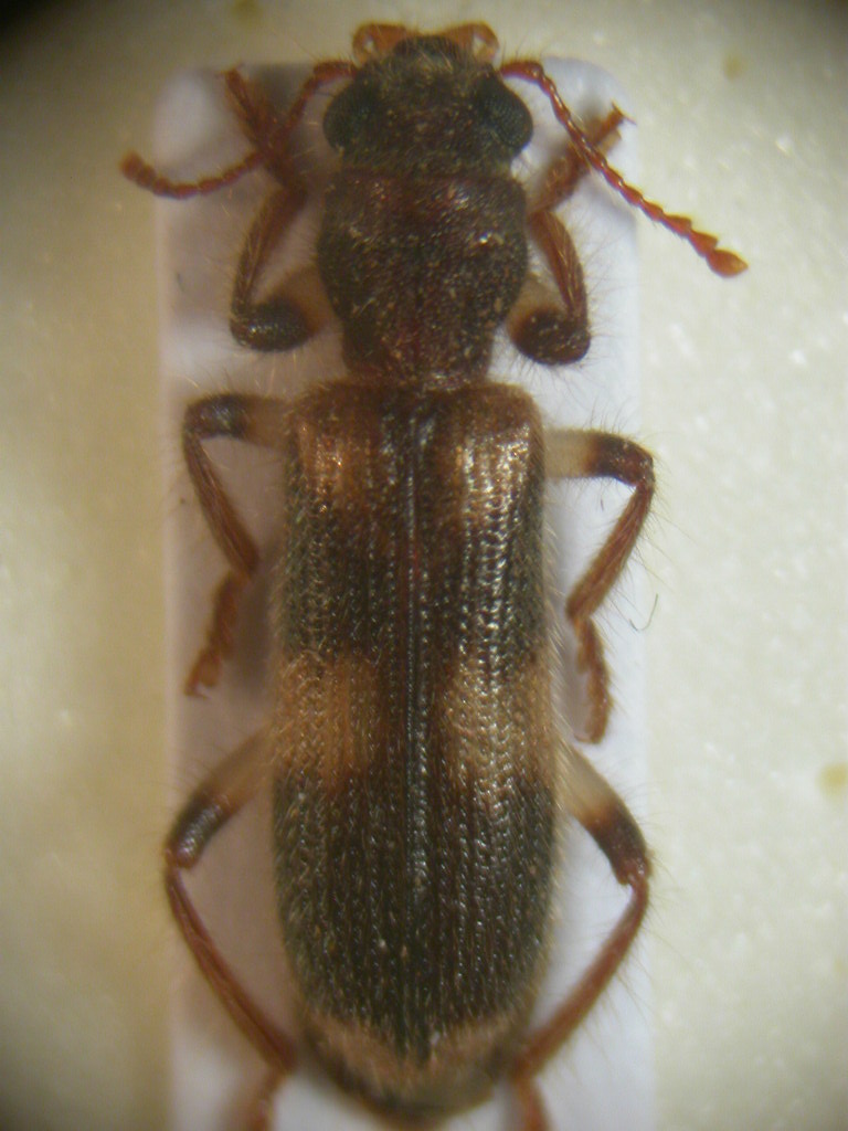 Questo lo determinerei come Opilo mollis; mi è sfarfallato da alcuni rami di lentisco; è lungo 9 mm: