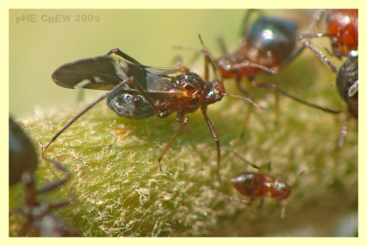 ..nella seconda foto in alto a destra si intravede la testa di una C. scutellaris ...dici che e' grande  ....sara' stato circa 3 mm (quello alato)...