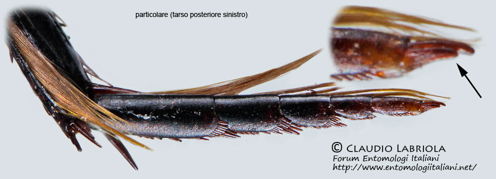 Se non erro le unghie dei tarsi posteriori, dovrebbero essere diseguali. Ma puoi anche osservarlo tu stesso, senza fotografarlo! Se dovesse comunque trattarsi del genere che ho ipotizzato, io mi fermo, perchè purtroppo non possiedo chiavi e neanche esemplari!!