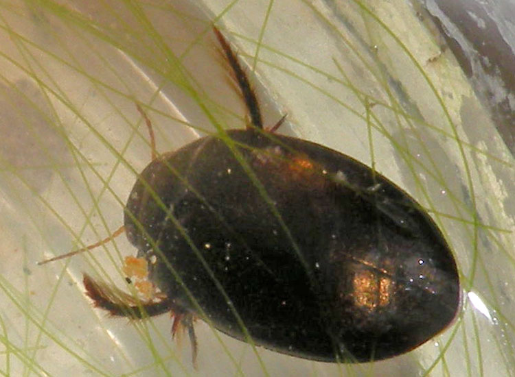 Nell'acqua raccolta il 28-07-11 in un fontanile della RN di Corte Valle Re nella pianura reggiana tra la via Emilia e l'Autostrada del Sole, ho trovato questo coleottero acquatico. Ho provato a studiarlo con le chiavi del Manuale per il riconoscimento dei macroinvertebrati delle acque dolci italiane (di S Campaioli, PF Ghetti, A Minelli, S Ruffo) e sarei arrivato alla famiglia Dytiscidae.