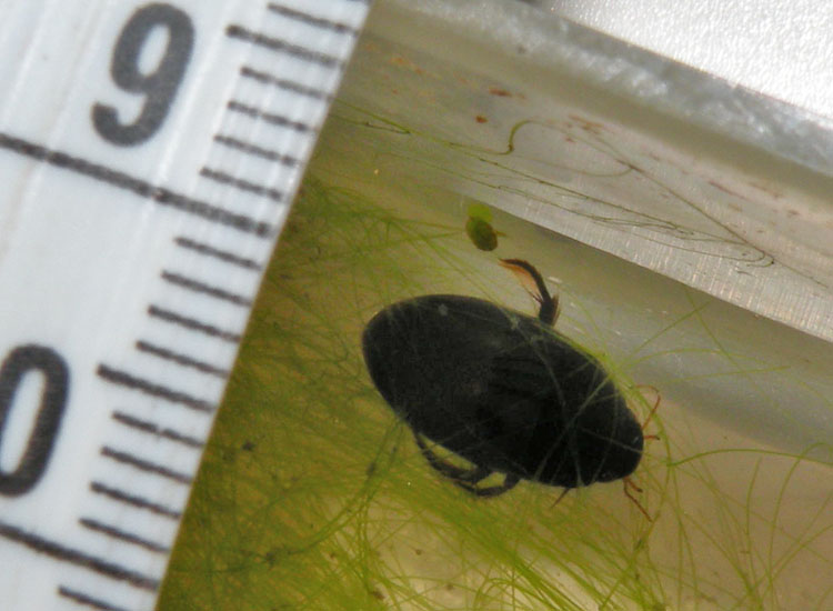 Nell'acqua raccolta il 28-07-11 in un fontanile della RN di Corte Valle Re nella pianura reggiana tra la via Emilia e l'Autostrada del Sole, ho trovato questo coleottero acquatico. Ho provato a studiarlo con le chiavi del Manuale per il riconoscimento dei macroinvertebrati delle acque dolci italiane (di S Campaioli, PF Ghetti, A Minelli, S Ruffo) e sarei arrivato alla famiglia Dytiscidae.