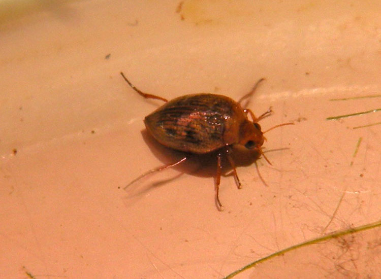 Dalla RN di Corte Valle Re, zona di risorgive nella pianura reggiana, ho prelevato il 28-07-11 un barattolo d'acqua in cui nei giorni seguenti ho osservato questo piccolo coleottero.