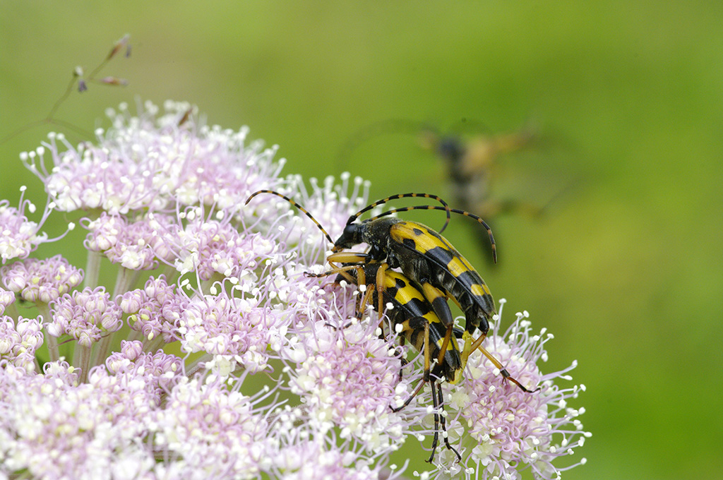 Rutpela maculata (coppia in copula + una in atterraggio)