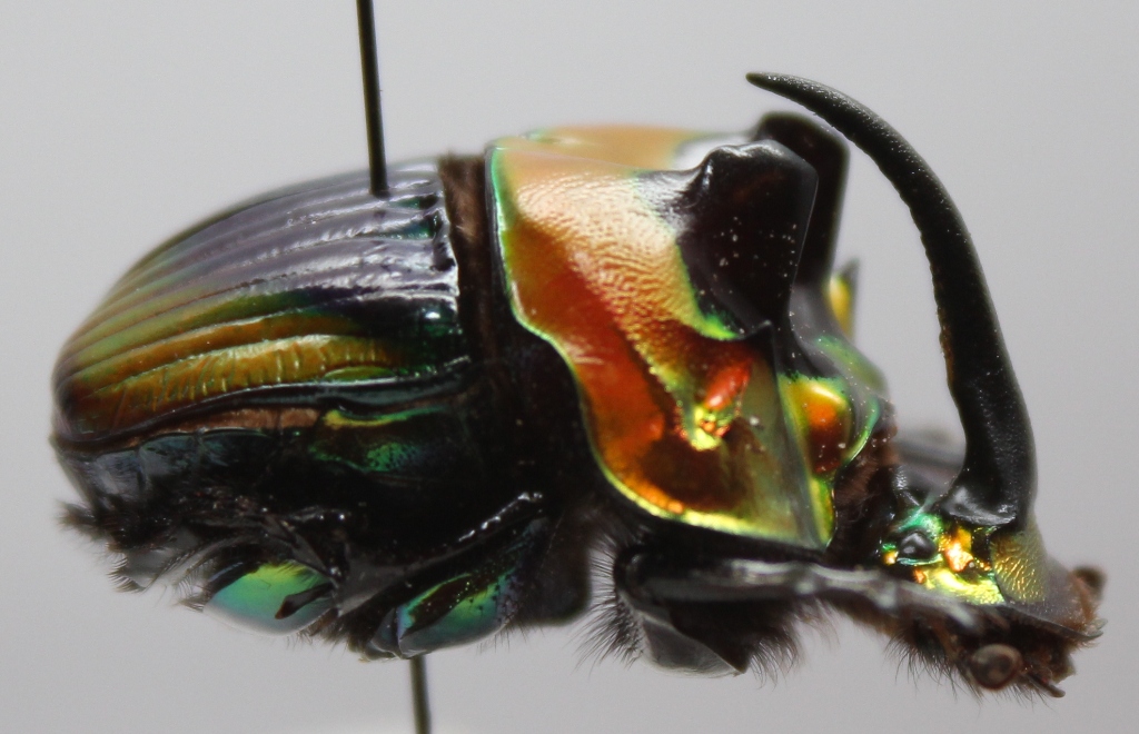 Per quanto riguarda la colorazione metallica di quasi tutti i Phanaeini riporto quanto affermato da Kevina Vulinec (Florida University): "En los escarabajos de estiércol (Phanaeine), la cabeza y la coraza protorácica reflejan una luz visible y una iridiscencia ultravioleta que se observa mejor desde una posición de frente al insecto. El cuerno de los machos, un poco menos iridiscente, forma una silueta contra la coraza protorácica. Si consideramos que el tamaño del cuerno del macho refleja el tamaño corporal, este mecanismo pudiera ser dirigido a competidores sexuales en interacciones agonistas. Las superficies protorácicas anchas y reflejantes presentes en los machos, pudieran también ser preferidas por hembras eligiendo su pareja sexual, quienes cooperarán en el cuidado futuro de su progenie..." - Florida Entomologist 80(2) 1997 June - :