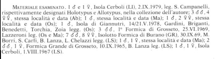 Sia il ♂ Holotypus che la ♀ Allotypus, provengono dall'Isolotto di Cerboli.