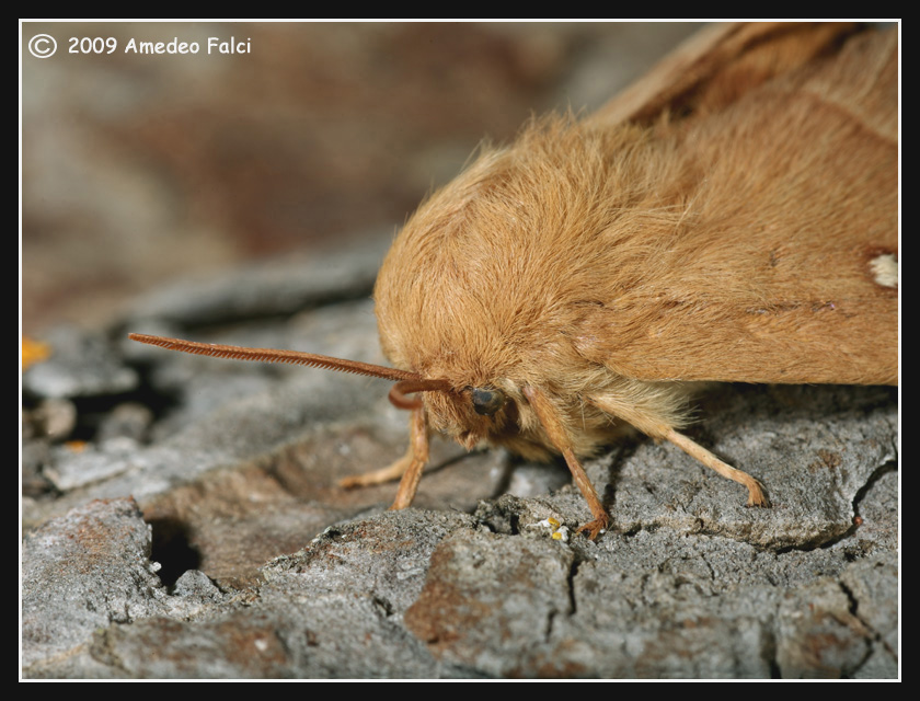 Maschio di Lasiocampa (Pachygastria) trifolii (belle foto :ok: ), molto fresco. Il maschio di L. quercus ha un colore decisamente più rosso mattone ed è ad attività diurna ed estiva (giugno-luglio), mentre il maschio di questa specie vola di notte in questo periodo (alla mia lampada qui fuori ce ne sono in questo momento quattro...)
