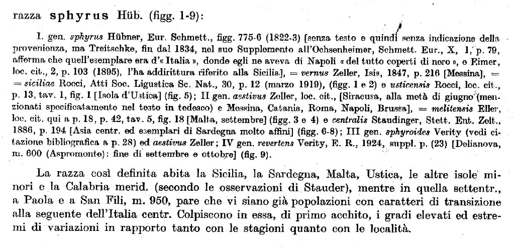 Il tutto fermo restando che nelle note bibliografiche Verity ha ignorato Rothschild, che come dice Maurizio già trattava sphyrus come sottospecie. Se Verity avesse considerato Rothschild, diciamo che mi sarei salvato in calcio d'angolo :to: