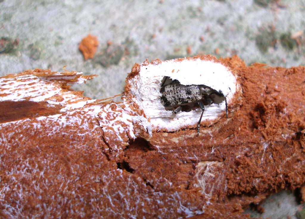 Acanthocinus reticulatus_foro di uscita_larva in celletta_Campigna 13 settembre 2011 057.jpg