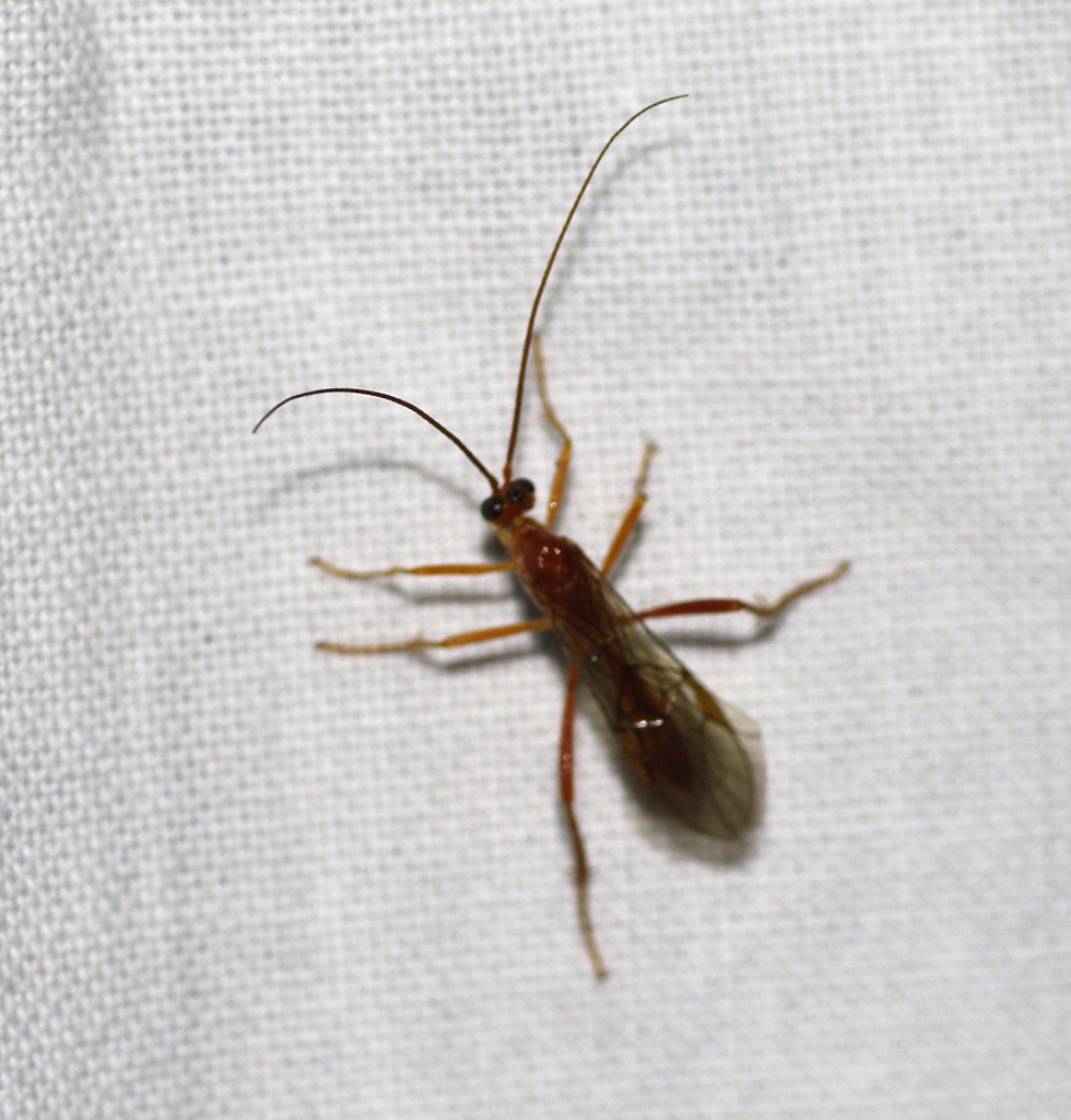 Questa sera ho voluto provare una caccia al lume "comoda"  , nel senso che la sto facendo sul terrazzo di casa. Ho attaccato un lenzuolo all'esterno di una grande finestra e ho posizionato il cavalletto della macchina fotografica allo scopo di sorreggere una lampada a luce nera. Sino ad ora ho trovato queste cose (faccio saltuari controlli uscendo sul terrazzo ogni mezz'oretta circa): piccolo curculionide: 8 mm senza rostro 5 mm. Un po' di imenotteri 24 mm. 10 mm. 7 mm. 6 mm. 5 mm. 4 mm.