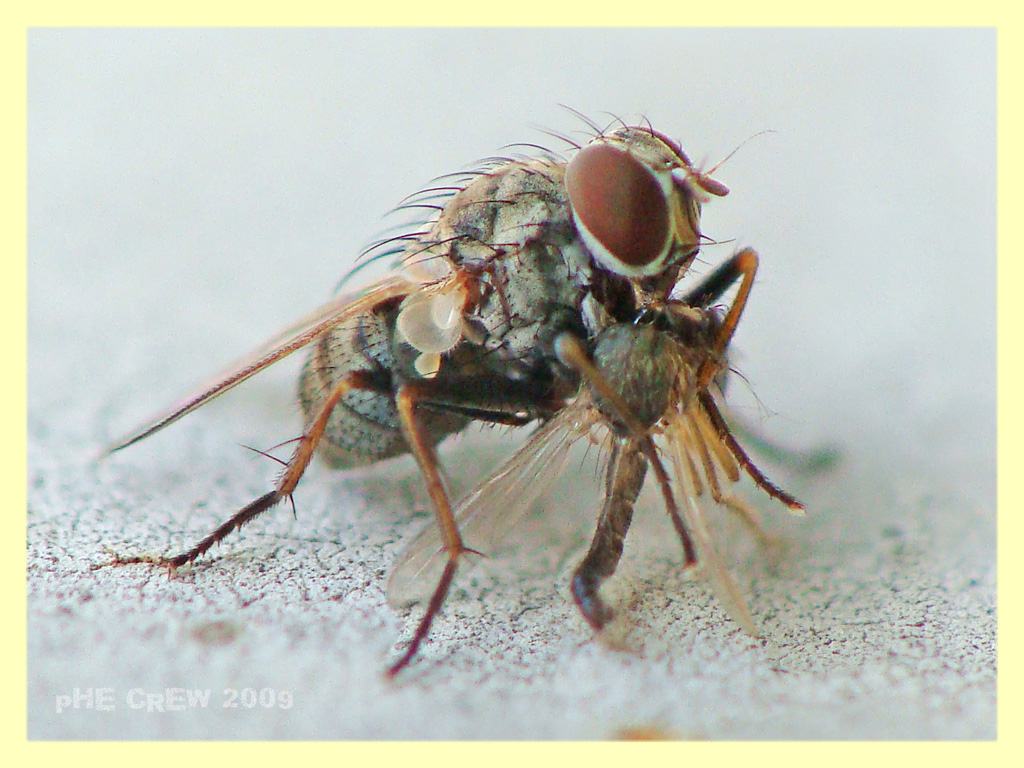 Coenosia sp. o Lipse sp. (Muscidae) con preda