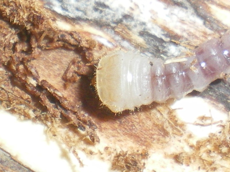 Ieri, 01-X-2011, con Alberto ( dorbodervus) a Matelica (Macerata) abbiamo trovato un tronco morto abbattuto e segato a meta di pioppo. La corteccia era marcia e si staccava facilmente, mostrando una nutritissima colonia di larve di Pyrochoidae che facevano pensare non ci potesse essere altra vita. Invece con grande sorpesa abbiamo incontrato decine di larve di piccoli cerambici. La forma di queste e le condizioni di ritrovamento mi facevano pensare all' Aegomorphus clavipes. Poi però abbiamo incontrato 5 di questi torelli!!! Ora: le condizioni del ritrovamento sono da Morimus, però sul campo mi sono ricordato subito di questa discussione: viewtopic.php?f=9&t=6131&hilit=saperda+dorcusTutto corrisponde con il ritrovamento di quelle Saperda: la corteccia morta che viene via facilmente (con l'aiuto di un coltellino) e libro e cambio che si sfaldano facilmente... Che dite??? Io per ora le ho messe in contenitori con strati di corteccia, libro e cambio pressati ed alternati (come riportato nell'altro post). Esemplare 1; dimensioni: 40mm Esemplare 2; dimensioni: circa 40mm PS quando ho trovato la seconda larva, credo di aver assistito ad un caso di cannibalismo: questa si trovava all'interno di una galleria di un altra larva della quale restava solo un pezzetto di addome, tutto il resto era stato divorato. PPS anticipo la pubblicazione per sapere come comportarmi nell'allevamento.