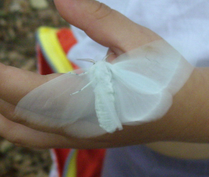 Vi mostro qualche immagine (brutte purtroppo) di questa specie, incontrata in estate, durante una passeggiata in faggeta con le mie figlie...le dita su cui la falena è posata appartengono a loro! :D