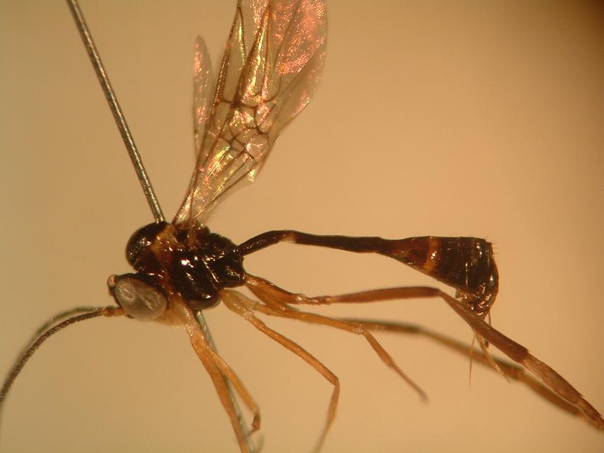 Per "sdebitarmi" delle (anche un pò "banali") determinazioni di questi ultimi giorni, vi propongo un curioso Ichneumonide (visto che ho deciso di dedicarmi a loro an'm e cor'). Questo Ichneumonide appartiene ad una piccola sottofamiglia, le Paxylommatinae (o per alcuni Hybrizontinae), da alcuni considerata famiglia a parte (Paxylommatidae) o sottofamiglia dei Braconidi. Come in questi ultimi, infatti, nella venatura alare manca la seconda vena ricorrente (a differenza degli altri Ichneumonidi) e forse non è un caso che ad occuparsi di recente della revisione dei generi e delle specie west-Paleartiche ci abbia pensato C.van Achterberg, responsabile in fauna.eur proprio della checklist dei Braconidi. In Italia sono presenti, secondo checklist, solo 2 specie, Eurypterna cremieri, che non ho mai visto e che è segnalata genericamente per l'Italia, e Hybrizon buccatus, di cui vi propongo 3 diversi esemplari catturati a fine luglio - inizio agosto 2008 in Liguria; si può notare come la venatura alare, e in particolar modo la vena 3SR+M, sia molto variabile. Anche la biologia di questi ichneumonidi è abbastanza peculiare, in quanto parassitoidi (probabilmente endoparassitoidi) di Formicidae di diversi generi.