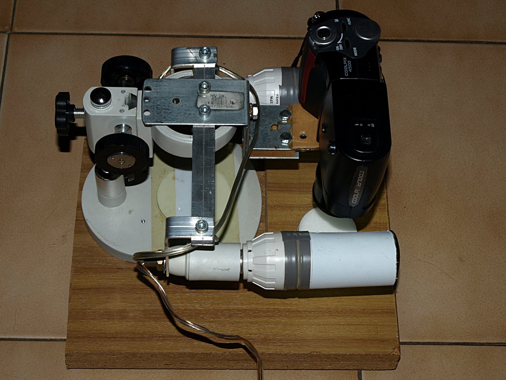 Visto che mi è stato chiesto di far vederfe come avevo adattato il supporto di un microscopio per usarlo con la Nikon Coolpix 4500, metto le foto dell'accrocco che ho costruito alcuni anni fa, e che uso ancora quando devo fotografare esemplari in qualche museo o collezione e non posso portarmi appresso stativo e reflex.