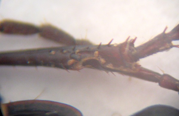 Sembra proprio un'altra cosa... Metto comunque una foto dei due esemplari a confronto e una foto del margine flessorio della tibia anteriore chiesta da Maurizio.