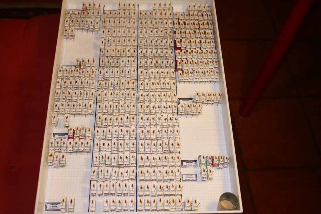 Io inserisco le specie nelle cassatte entomologiche in senso verticale, così maneggio meglio gli insetti.