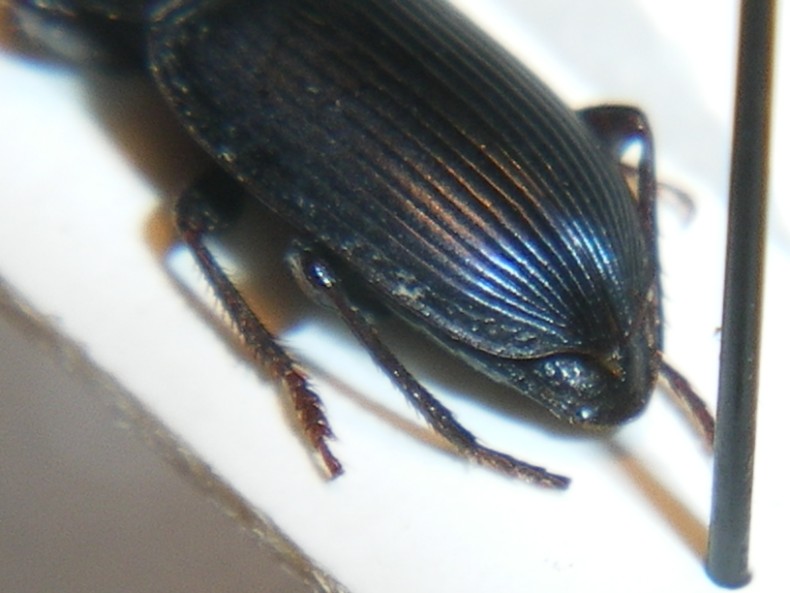 sì, però i tarsi post. (1° articolo non vistosamente più lungo del 2°) sono chiaramente da Harpalus & c., non da Anisodactylus, ci vuole una foto dell'apice elitrale per vedere eventuali punti all'apice della 7a (o chissà, dell'8a) interstria, e già che ci sei una della parte ventrale dell'addome, per vedere se sugli sterniti ci sono peluzzi accessori o solo le 2 setole normali, una per lato