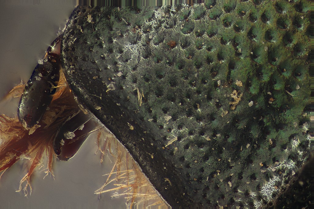 L'ingrandimento è di 8X con stacking in Zerene Pmax di 43 scatti in luce flash,scattando sul tempo di 2" e sincro sulla II° tendina.