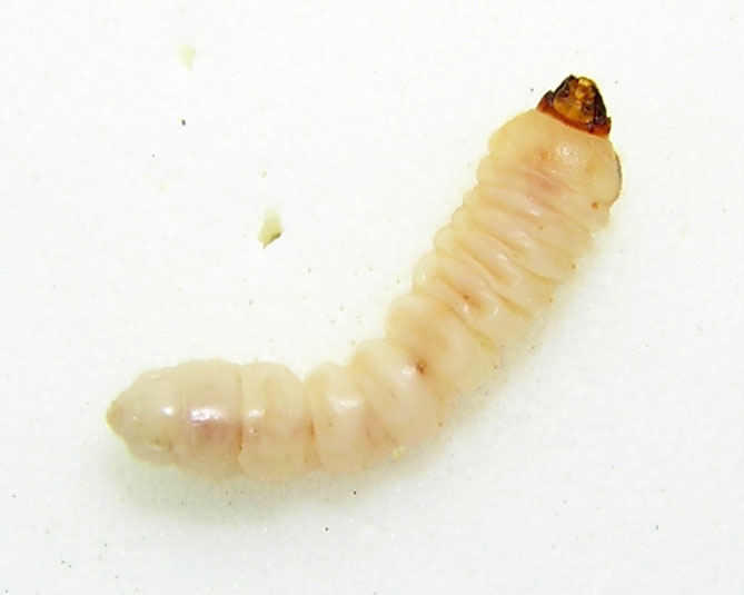 Altre immagini di un'altra larva (credo della stessa specie), trovata assieme a tante altre nelle medesime condizioni (tutte di dimensioni comprese tra 1 e 2 cm), sempre sotto corteccia. Questa volta ho controllato bene ogni traccia del loro passaggio, rosura accumulata e pressata, segni di sfarfallamento, simili a quelli di Rhagium; nessuna traccia che mi faccia pensare ad una specie grande come il Monochamus, nessuna galleria che si interna nel legno :roll:, solo tanti Scolytidae . Il sito si trova tra i 280 e i 500 m, effettivamente sono pochini per gli Acanthocinus (da quello che ho sentito dire). Mi piacerebbe conoscere il parere di qualche altro esperto.