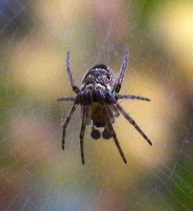 Chissà se alcuni caratteri appena percettibili nell’immagine (ragnatela orbiculare, disegno dell’epistosoma, estermità dei palpi globose e molto sviluppate tipiche del maschio, etc...) possono in qualche modo ricondurre, se non alla specie, almeno al genere e alla famiglia di appartenenza.