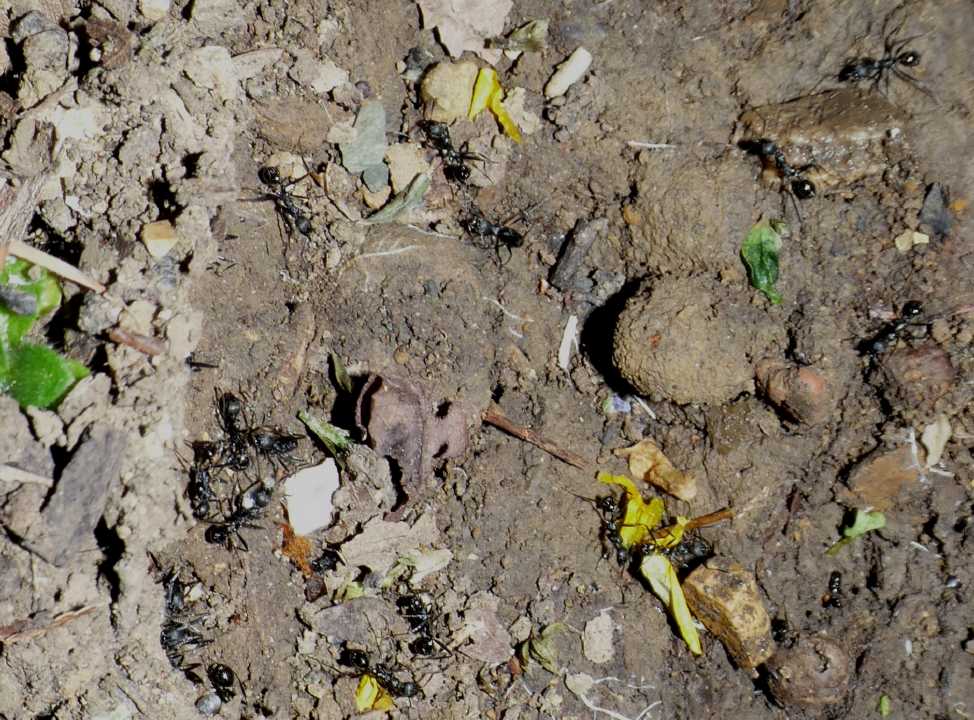 Ripensandoci, ricordo di aver trovato a volte pezzi di fiori e vegetali freschi in formicai di Aphaenogaster spinosa, mentre in quelli di Messor si trovano soprattutto semi (ma a volte anche presso Messor meridionalis e M. capitatus ho trovato ritagli di foglie..