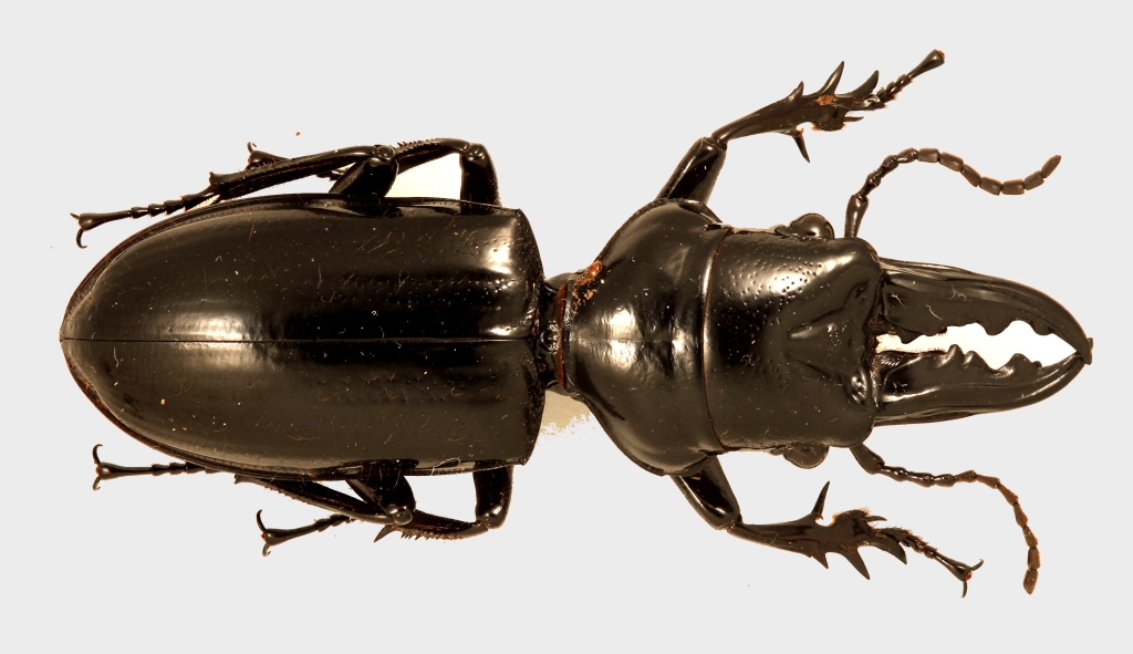 Questo è un bestione veramente impressionante: dall'apice delle elitre alla punta delle mandibole misura poco meno di 6 cm! Quando l'ho visto su uno scalino, immobile sotto a una luce al neon, per un attimo ho avuto l'impressione di avere davanti uno di quei modellini di gomma che vendevano in edicola qualche anno fa.