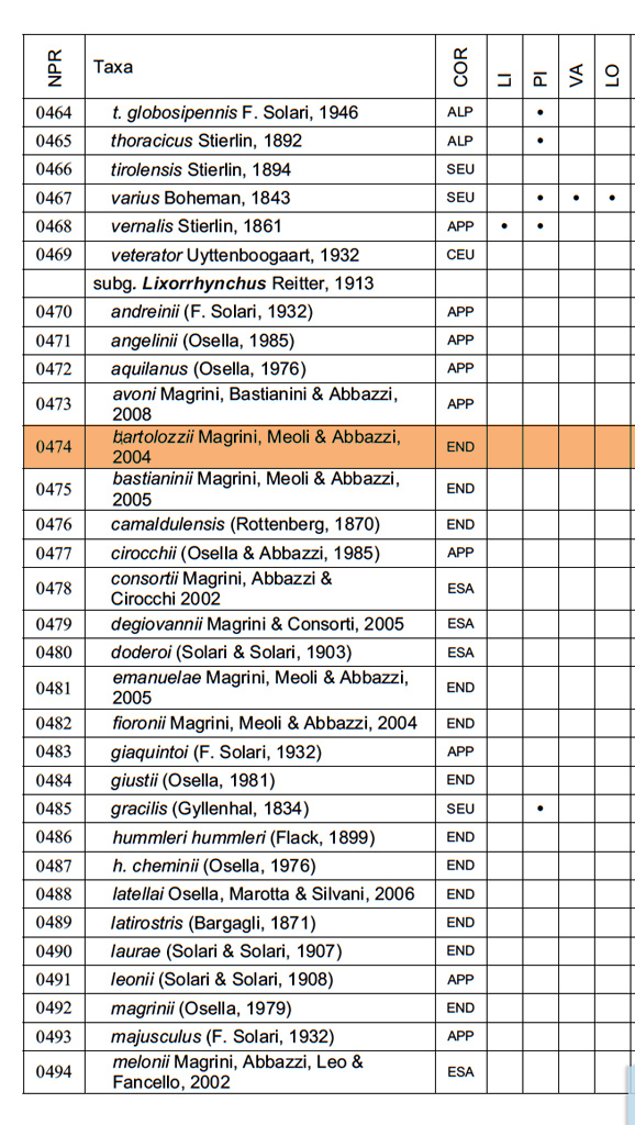 Otiorhynchus (Lixorrhynchus) bartolozzii Magrini, Meoli, Cirocchi & Abbazzi, 2004 - Curculionidae Entiminae Otiorhynchini