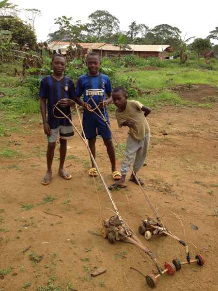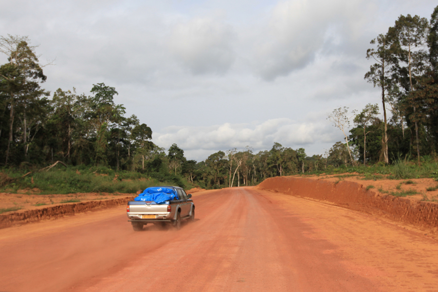 Strada facendobambini a farsi il bagnoLa route..Ci aspettano ancora circa due ore di viaggio, e uno degli autisti sollecita l’altro di aumentare la velocità e di stargli vicino. Per alcuni km ci prova pure ma si ha la sensazione che il suo mezzo non ce la potesse fare a mantenere i 90 km/h impostati dalla macchina che ci precedeva. Ad ogni buca si percepiva un pericoloso rumore provenire dalla parte posteriore della macchina, ad ogni buca uno stridulo più violento. Ma cercava di tenere duro. Tuttavia noi eravamo abbastanza rilassati nonché stanchi, e scrutavamo il cielo ormai buio pesto, per scorgere forse in lontananza, le prime luci di Makokou.