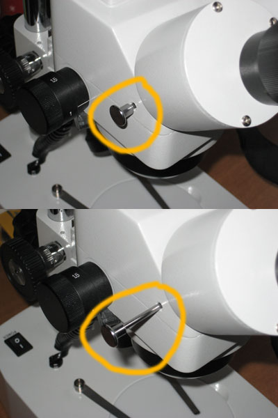 Una considerazione: questa è la leva che apre il terzo tubo e chiude l'oculare sinistro