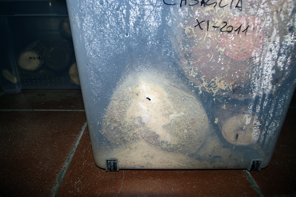Devo dire che periodicamente apro il cartone ed ispeziono. Infatti su questo tronco nascono dei curculionidi che non vanno a finire nel barattolo.