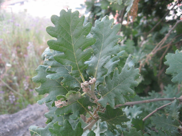 Approfittando di un pomeriggio libero (miracolo!) oggi mi sono recato nelle campagne di Zafferia (villaggio della periferia sud di Messina), principalmente per mettere tre trappole su alcune querce isolate; considerato il caldo che sta facendo in questi giorni anche da me, non credo di avere una completa delusione. Ecco le foto della prima quercia: è una farnia ( Quercus robur) ? La trappola a nassa innescata a vino e zucchero. E' risaputo che la quercia è l' essenza preferita da molte specie d' insetti, e segni di attacchi si notano su alcune foglie: gallerie larvali, crisalidi sciuse... Un lepidottero di cira 1 cm immobile su una foglia