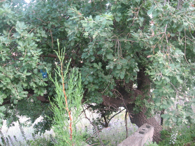 All' ombra di entrambi gli alberi cresce abbondante l' acanto (mi sembra sia l' Acanthus spinosus), che sta cominciando a fiorire: i fiori di questa pianta sono abitualmente visitati da grossi Apidae come Xylocopa violacea e Bombus terrestris.