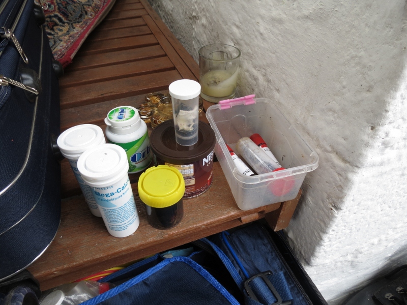 Questo e' parte del bottino come viene trasportato a casa nel bagaglio a mano .... roba da galera..... per fortuna mi vedono ogni mese e non mi controllano ( l'aereoporto di Volos ha 4 voli a settimana in totale su Germania Milano Roma e un'altra che non ricordo ) quindi ogni 16 voli dopo un mese quelli del check-in mi vedono e non mi stressano piu' di tanto