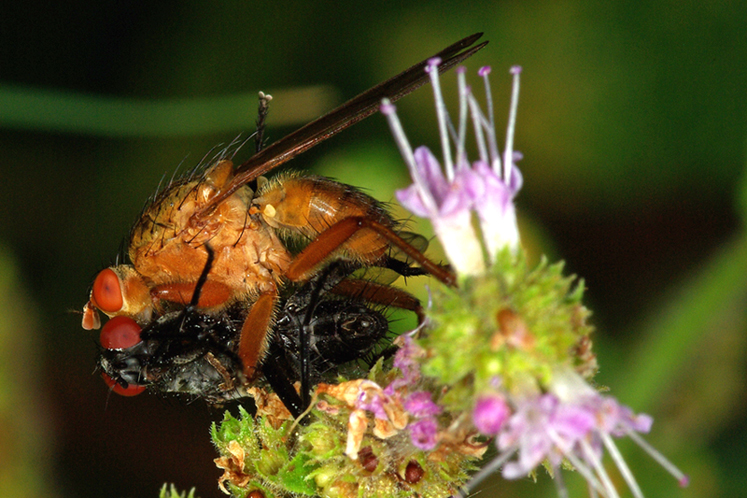Apparentemente può sembrare un affettuoso abbraccio-bacio interrazziale, ma la realtà è un po' più cruda. Il predatore credo sia Scathophaga suilla (Scatophagidae), la preda non ne ho la minima idea (a tal proposito ogni suggerimento è gradito).